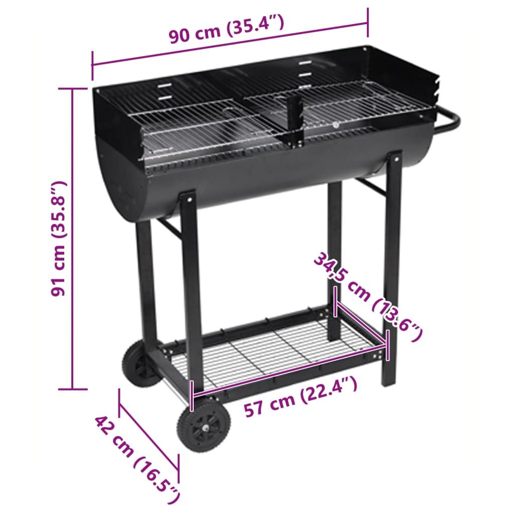 Included are two charcoal grills and there is a lower shelf which is handy to store your barbecue accessories. This charcoal barbecue has two wheels, these allow you to move the barbecue around.