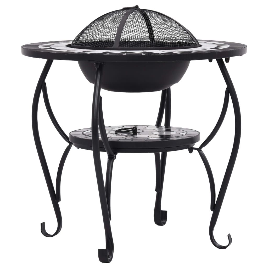 Mosaic Fire Pit Table Black and White 26.8" Ceramic