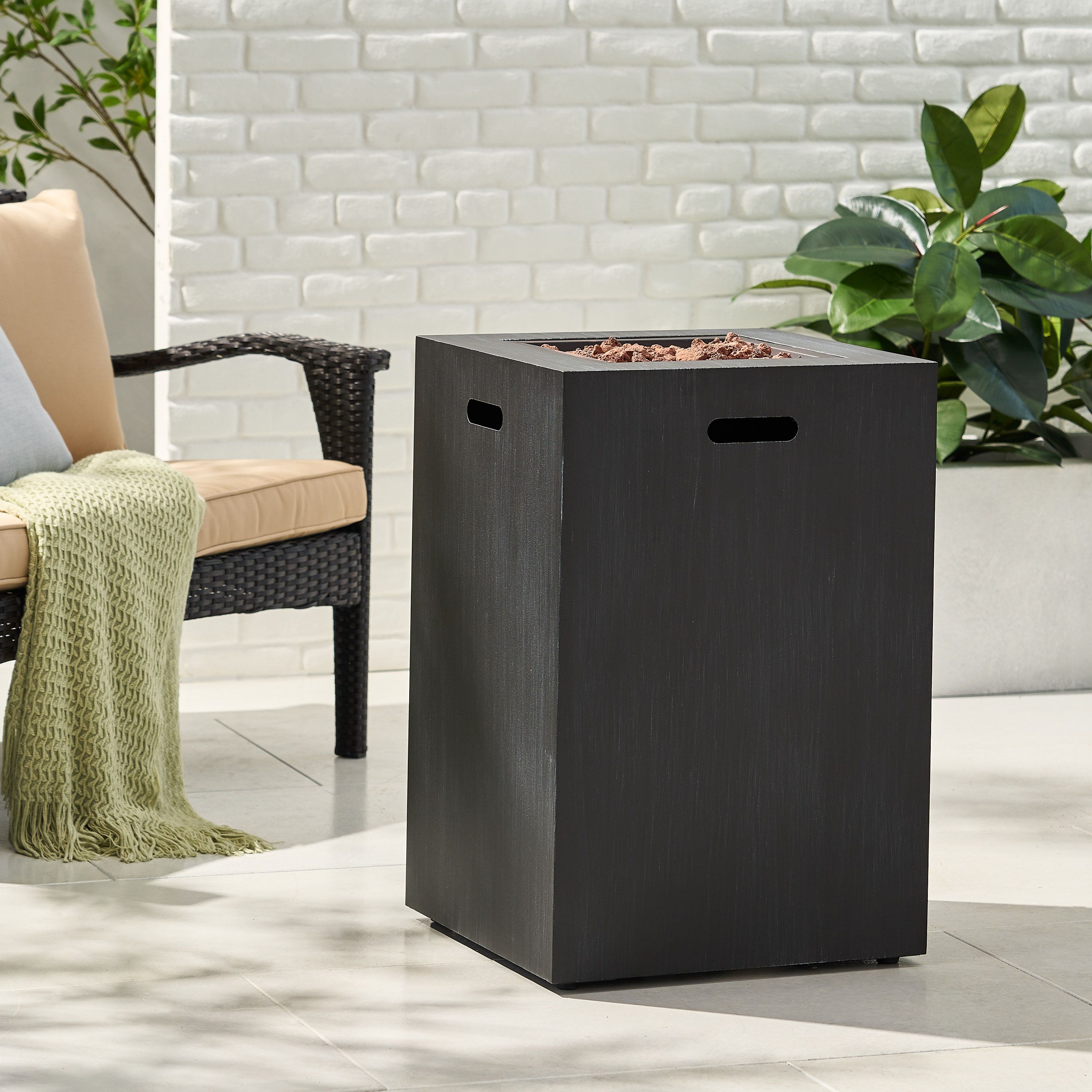 IRON FRAME: Constructed of powder-coated iron, the frame of this fire column is made to be incredibly durable, ensuring that this piece will hold up under use. The frame is finished with a brushed black color, making this an understated yet chic addition to your home.