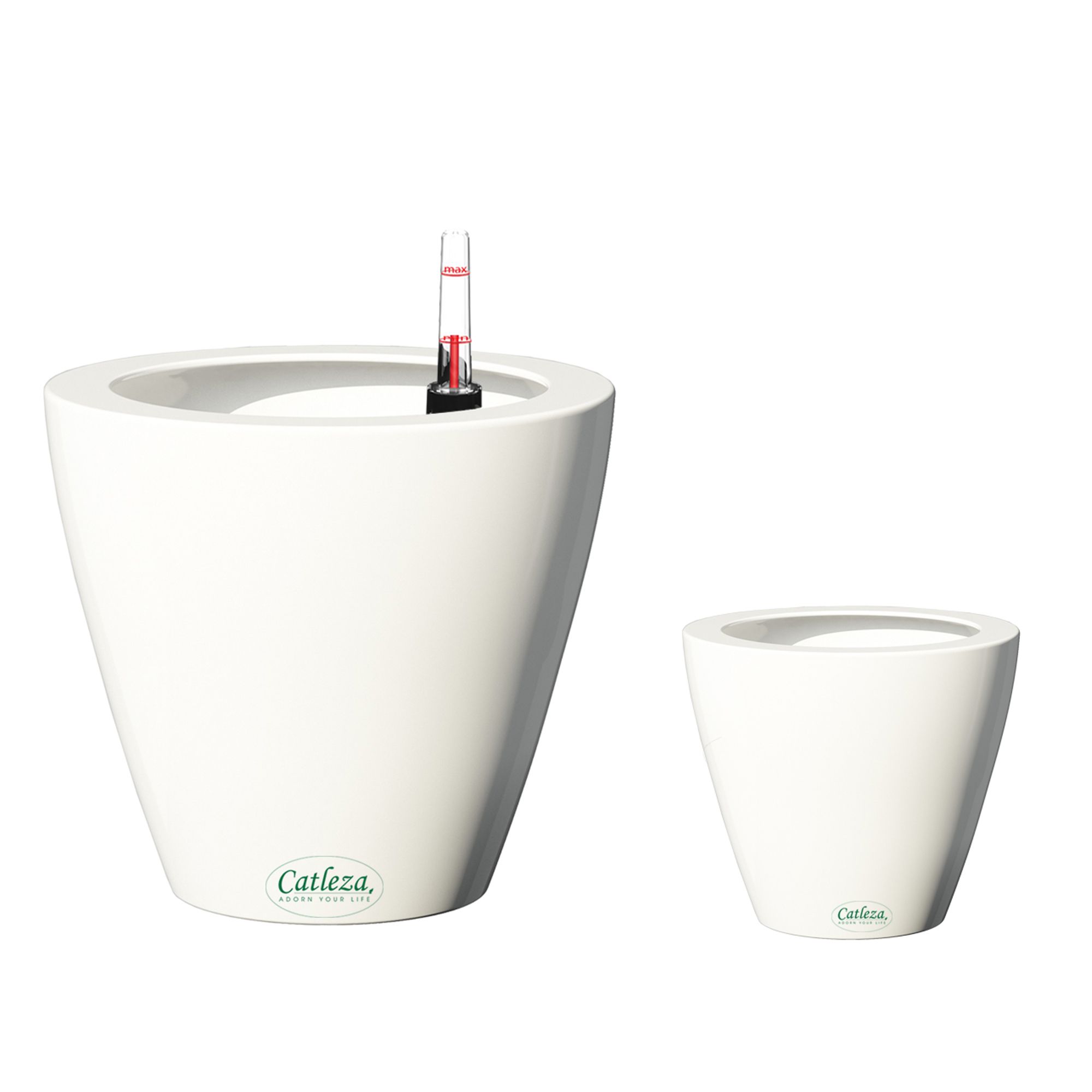 2-Pack Smart Self-watering Planter Pot for Indoor and Outdoor - White - Round ConeTake a holiday from your plants, the perfect planter for beginner and time conscious gardeners. This planter comes with a support base, which can help moisturing the soil, keeps water in the bottom of the pot. No waterlogging, no dry spells. No worries about the environment either, certified by GRS (Global Recycled Standard), this planter helps a green thumb be even greener. The minimal effort, all freedom round planter is a perfect addition to your home!