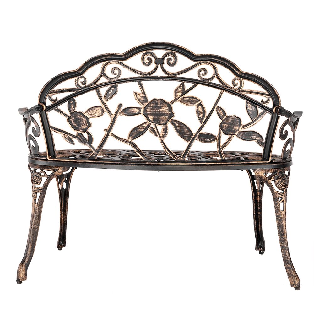 This beautifully designed powder coated chair will add elegance to your front or backyard, which will be a great addition to garden or make a completion for your path. The highlight is the hollowed rose design. This bench features powder-coat steel construction to deliver durability and light weight, and the antique finish adds an attractive look to your patio or deck. The stylish design on the backrest provides a stylish look, and the bench is easy to assemble. Beautifully designed powder coated bench will add elegance to your front or backyard, ideal for along a path, under a tree, among the flowers or in your favorite peaceful spot.
