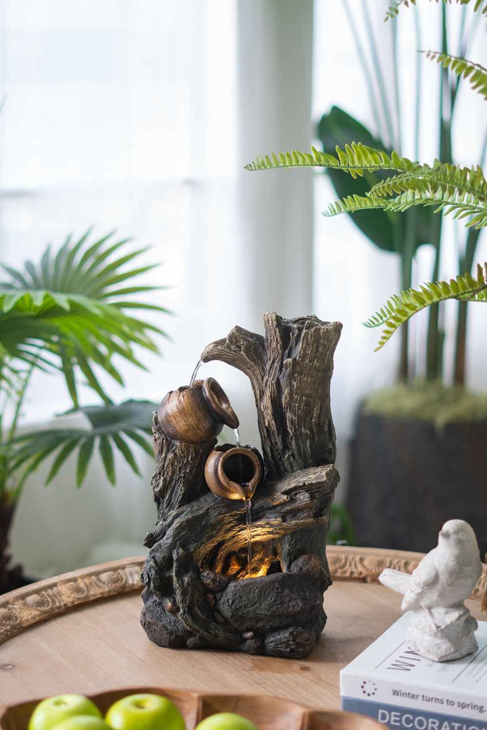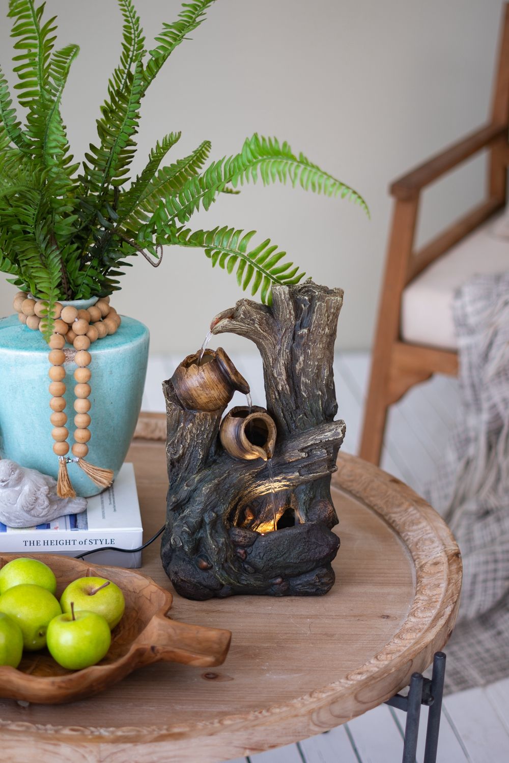 The organic, aged brown finish allows this fountain to complement almost any decor theme, including farmhouse, bohemian, French country, and transitional motifs.