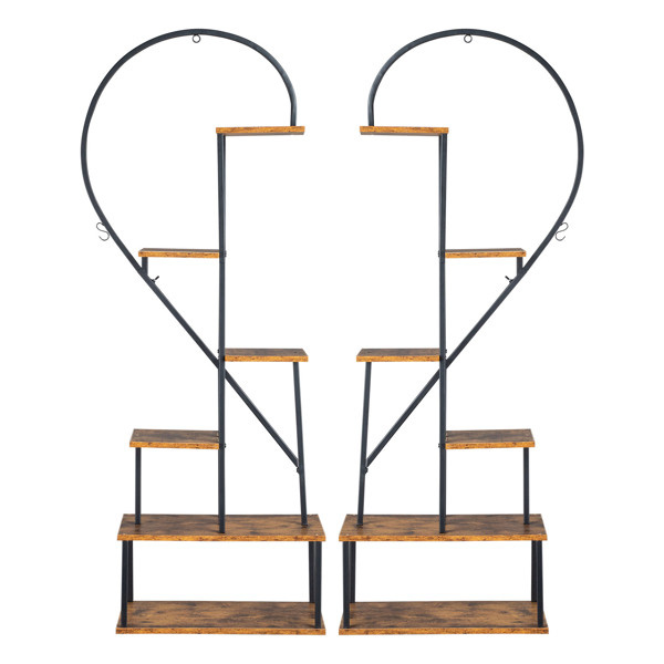 Artisasset 2pcs 6 Layers Half Heart Iron Wood Suitable For Garden Balcony Patio Lawn Home Decoration Plant Stand Flower Pot Stand Iron Flower Stand Bl