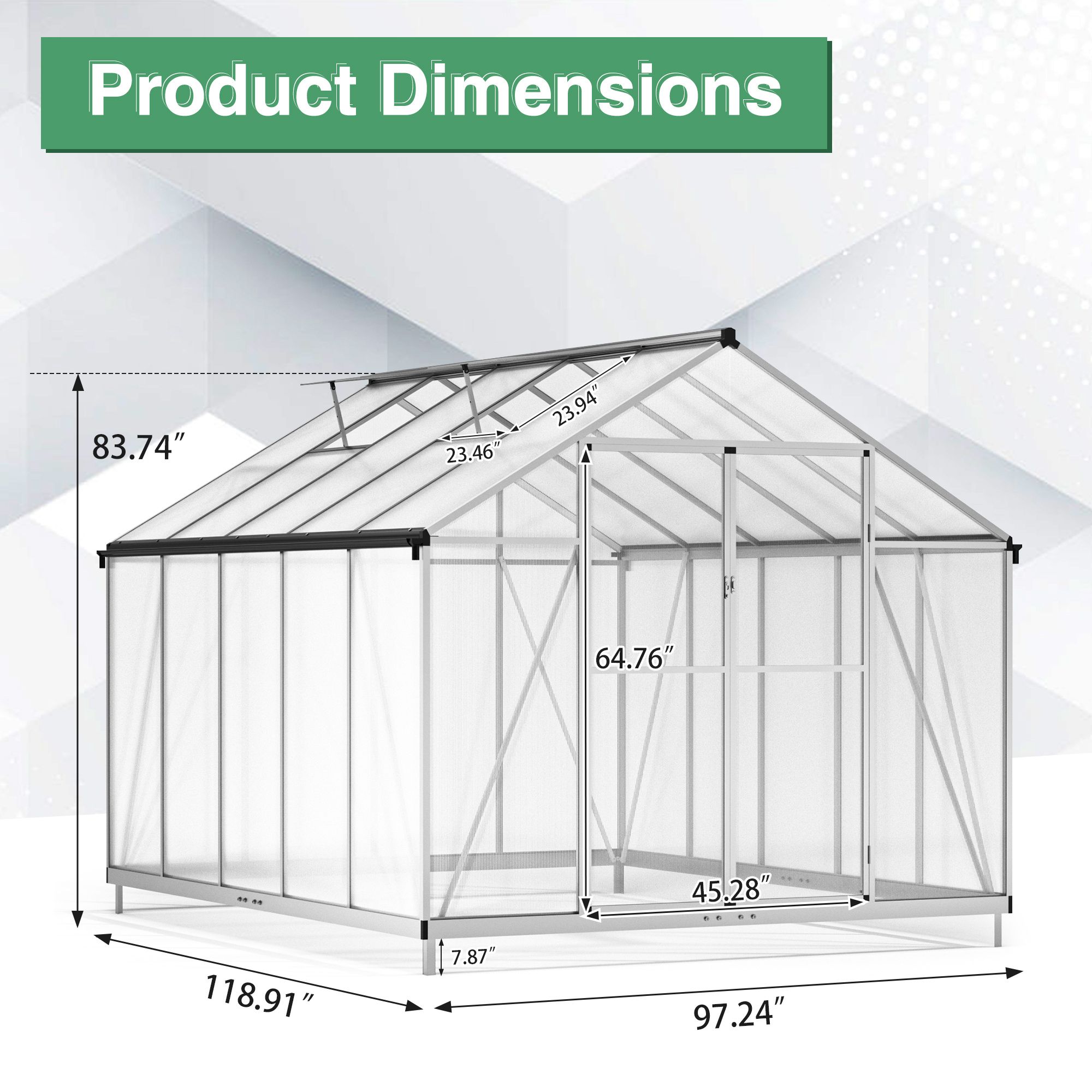 8' x 10' Polycarbonate Outdoor Greenhouse, Aluminum Walk-in Green House w/ 5-Level Adjustable Vents, Gutter and Door 8' x 10' Polycarbonate Outdoor Greenhouse, Aluminum Walk-in Green House w/ 5-Level Adjustable Vents, Gutter and Door 8' x 10' Polycarbonate Outdoor Greenhouse, Aluminum Walk-in Green House w/ 5-Level Adjustable Vents, Gutter and Door 8' x 10' Polycarbonate Outdoor Greenhouse, Aluminum Walk-in Green House w/ 5-Level Adjustable Vents, Gutter and Door 8' x 10' Polycarbonate Outdoor Greenhouse, Aluminum Walk-in Green House w/ 5-Level Adjustable Vents, Gutter and Door 8' x 10' Polycarbonate Outdoor Greenhouse, Aluminum Walk-in Green House w/ 5-Level Adjustable Vents, Gutter and Door