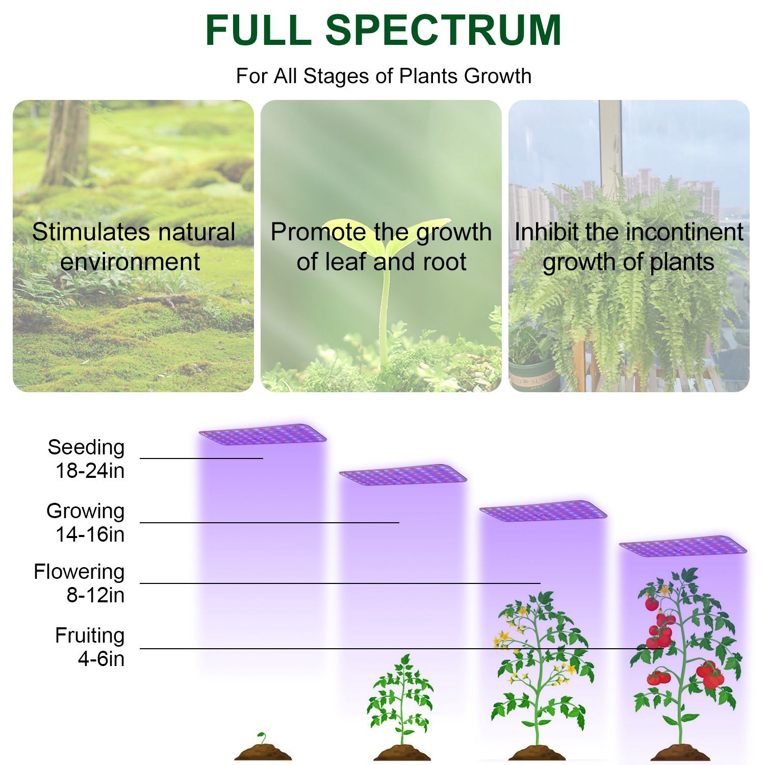 *Wide Applications*:Our low consumption but high efficiency plant grow lights can be used to grow houseplants,vegetables,lettuce,tomatoes,herbs and various plants in greenhouse,farm,patio,dark room. Full spectrum illumination provides all necessary lights that plants need for seeding,growing,flowering,fruiting.