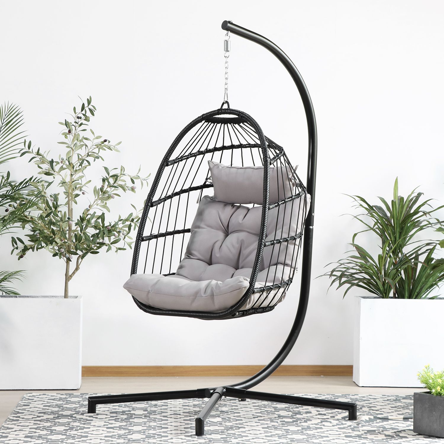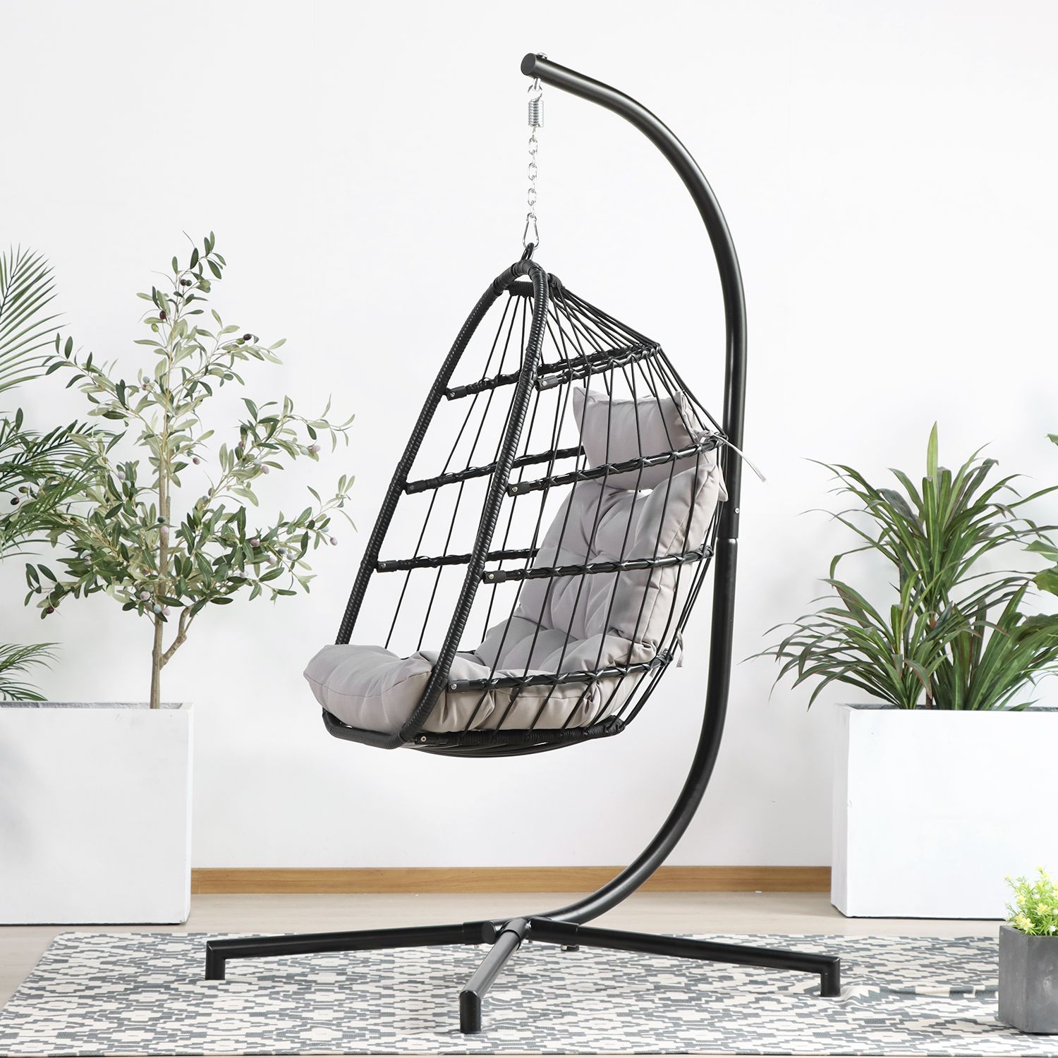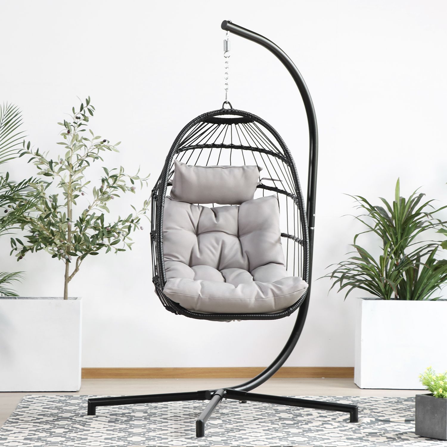 Hanging Folding Egg Chair for Indoor Outdoor Patio with Aluminum Frame and Metal Stand;  330lbs Capacity Hanging Folding Egg Chair for Indoor Outdoor Patio with Aluminum Frame and Metal Stand;  330lbs Capacity Hanging Folding Egg Chair for Indoor Outdoor Patio with Aluminum Frame and Metal Stand;  330lbs Capacity