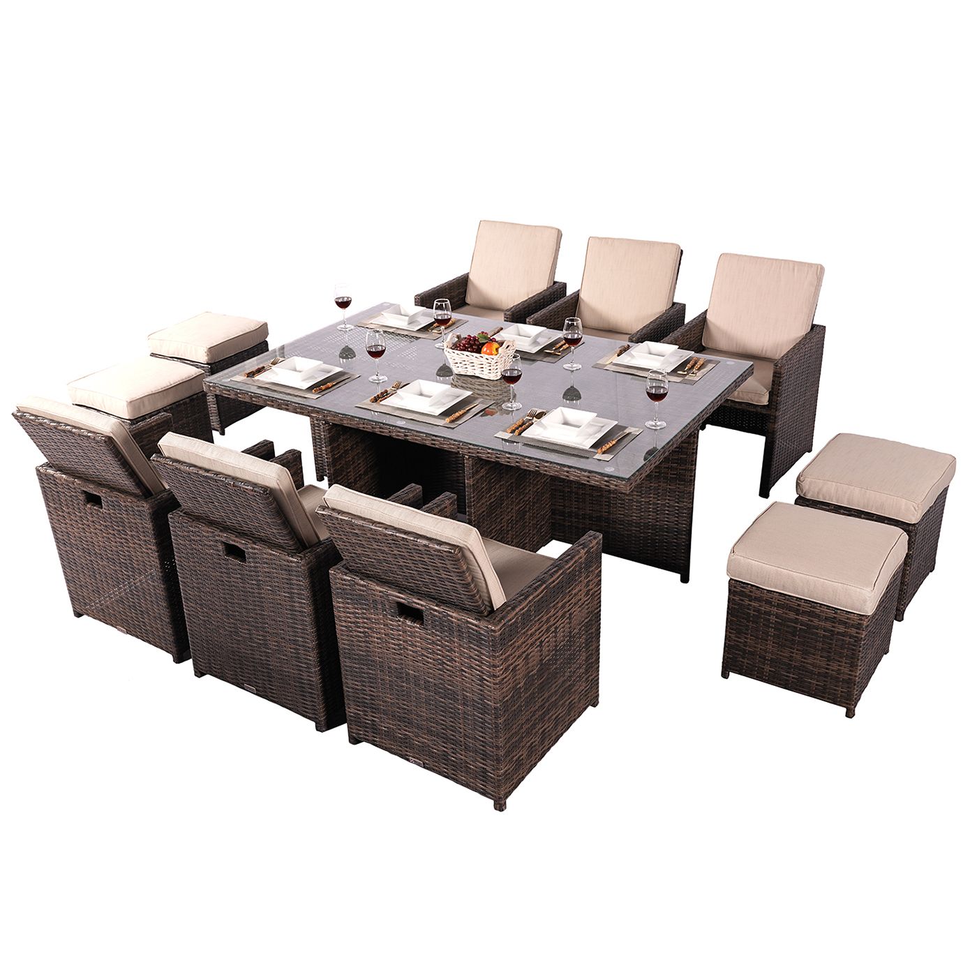 Direct Wicker 11-Piece Outdoor Wicker Dining Set Garden Rattan Dining Chair Lounge Set
