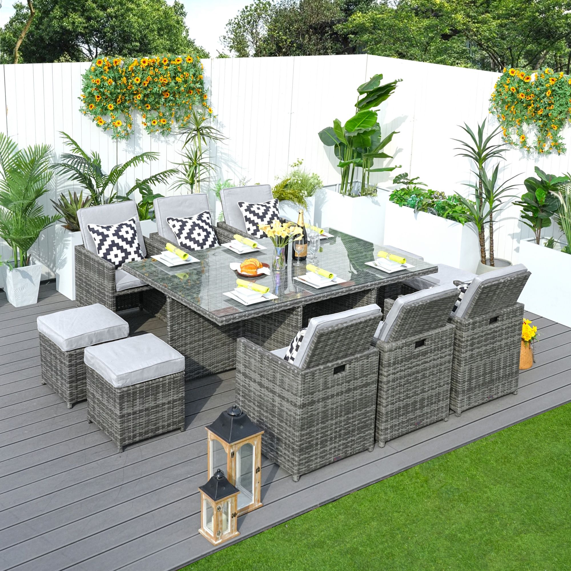 Direct Wicker 11-Piece Outdoor Wicker Dining Set Garden Rattan Dining Chair Lounge Set