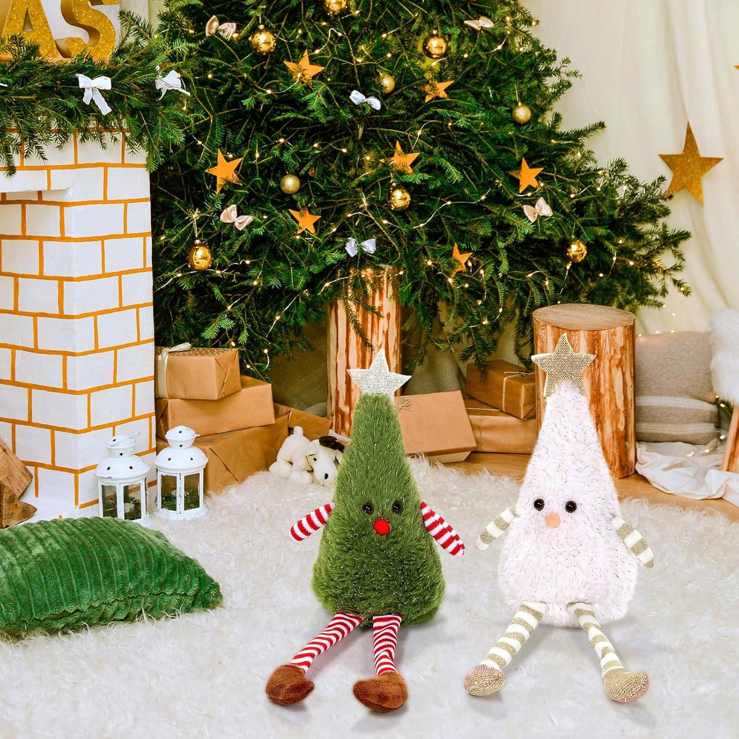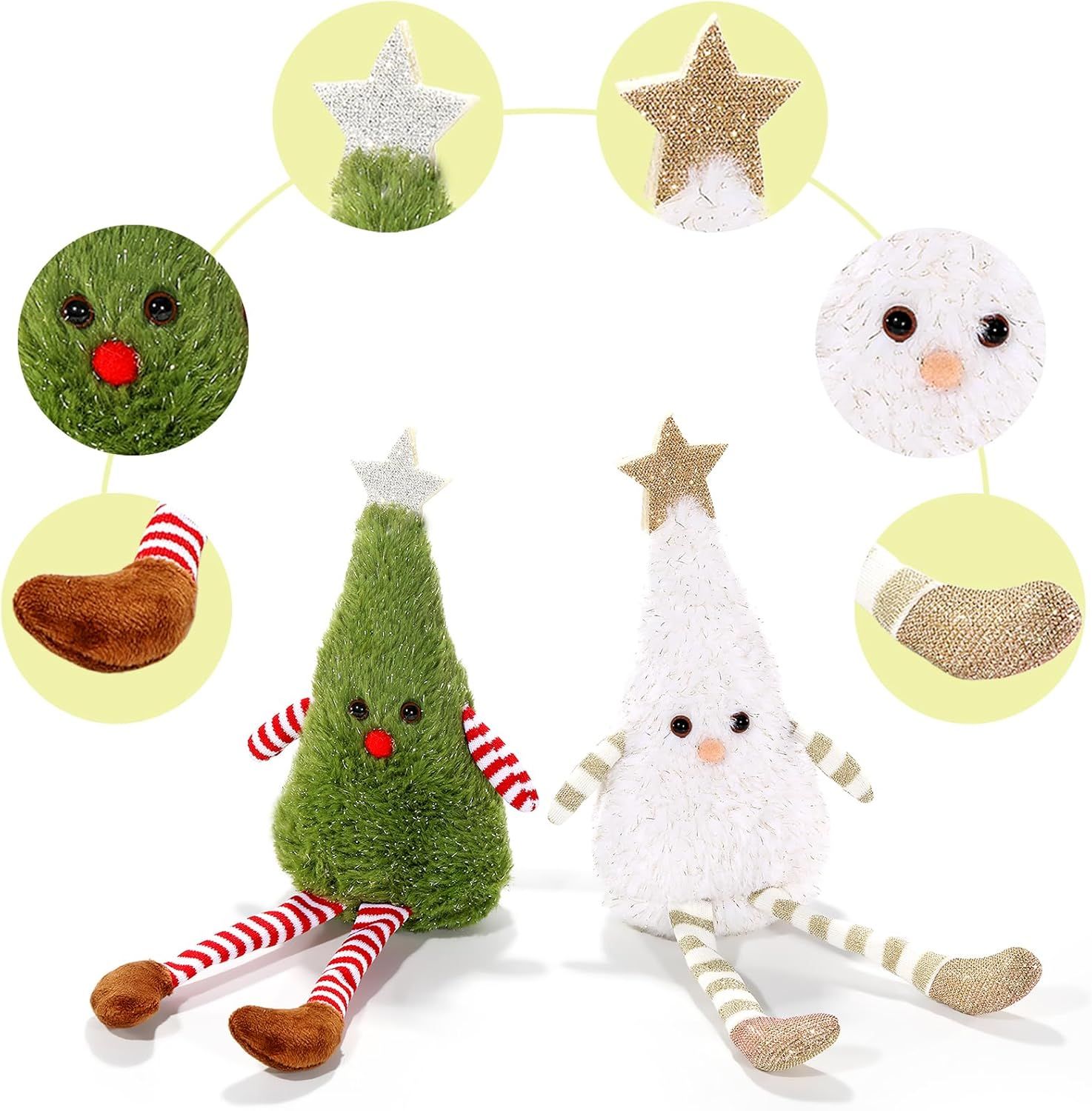 CUTE CHRISTMAS DECOR: Each plush is made from soft, fluffy cotton, with heads topped with sparkling stars, shiny shoes, striped arms and legs, and a smooth finish that won’t shed. Weighted bottoms let each plush sit securely on any surface.CHRISTMAS TABLE DECORATIONS: The charming Christmas dolls are soft, cuddly, and irresistibly cute. Perfect as Christmas table decorations, they measure 7.9 x 3.5 x 2.4 inches with 4.3-inch dangling legs.MANTEL CHRISTMAS DECORATIONS: When placed on a shelf, the plush doll’s legs dangle with charm and personality. Perfect for your mantel, table, bookcase, or high shelf, these cute sitters bring warmth and festive spirit to Christmas home decor.CHARMING HOME DECOR ACCENT: These plush tree dolls add playful personality to your holiday setup. With fun colors, textures, and dangling legs, they become eye-catching conversation starters that bring a cozy festive vibe to any room.GREAT CHRISTMAS GIFT: The cute Christmas dolls exude a festive atmosphere and make a thoughtful gift for family and friends during the holidays. A delightful way to share warmth and joy with loved ones.