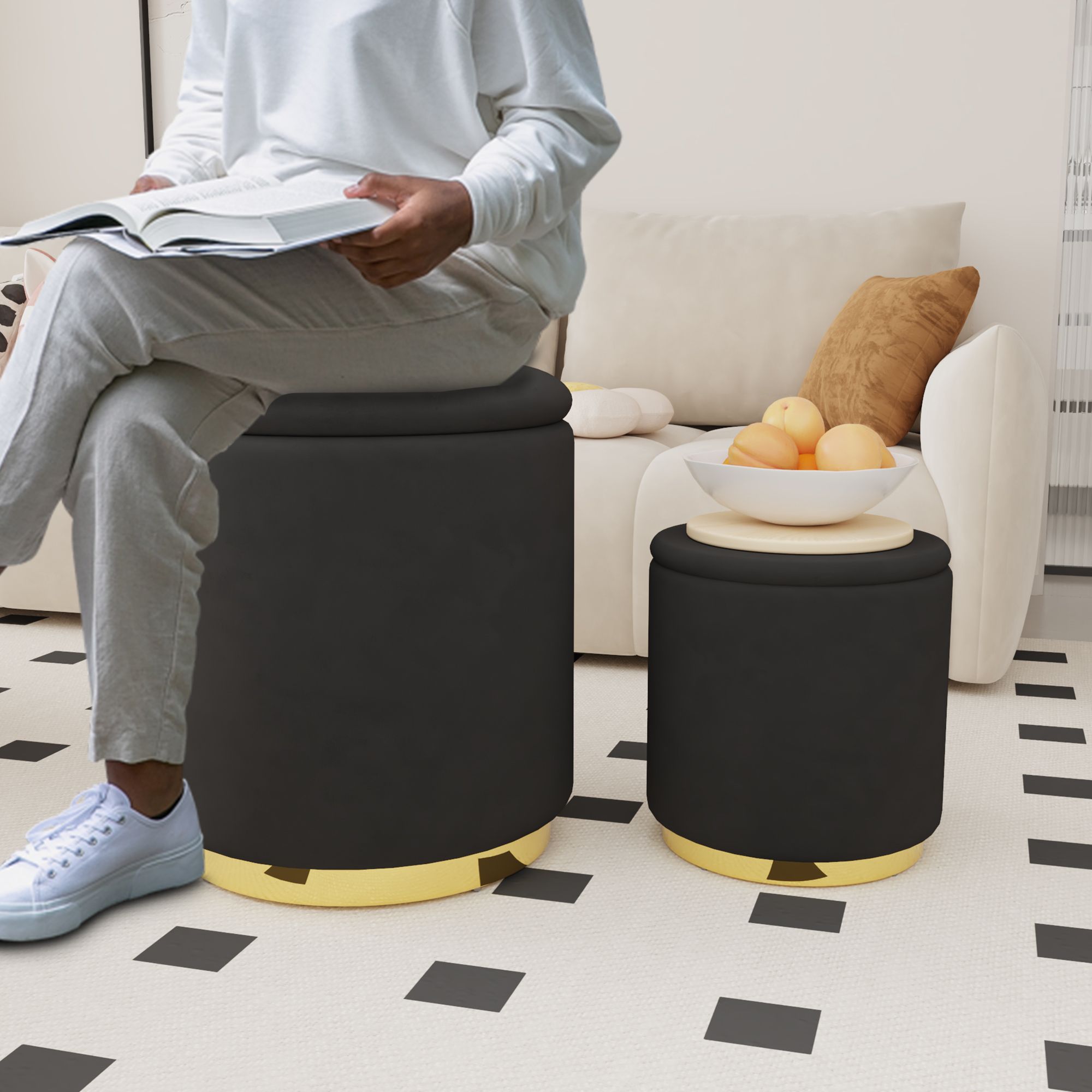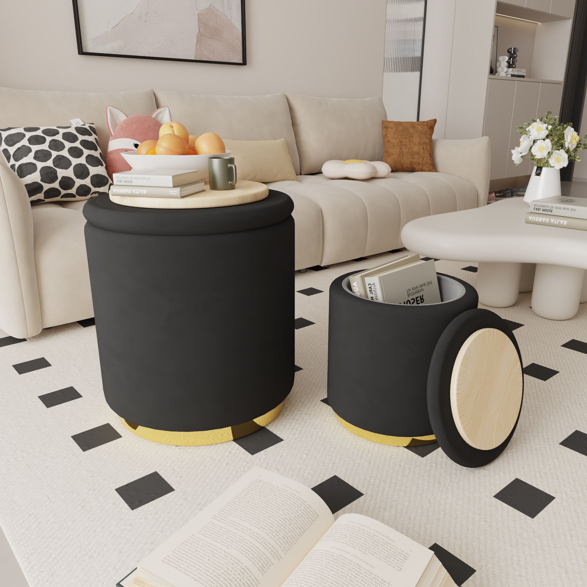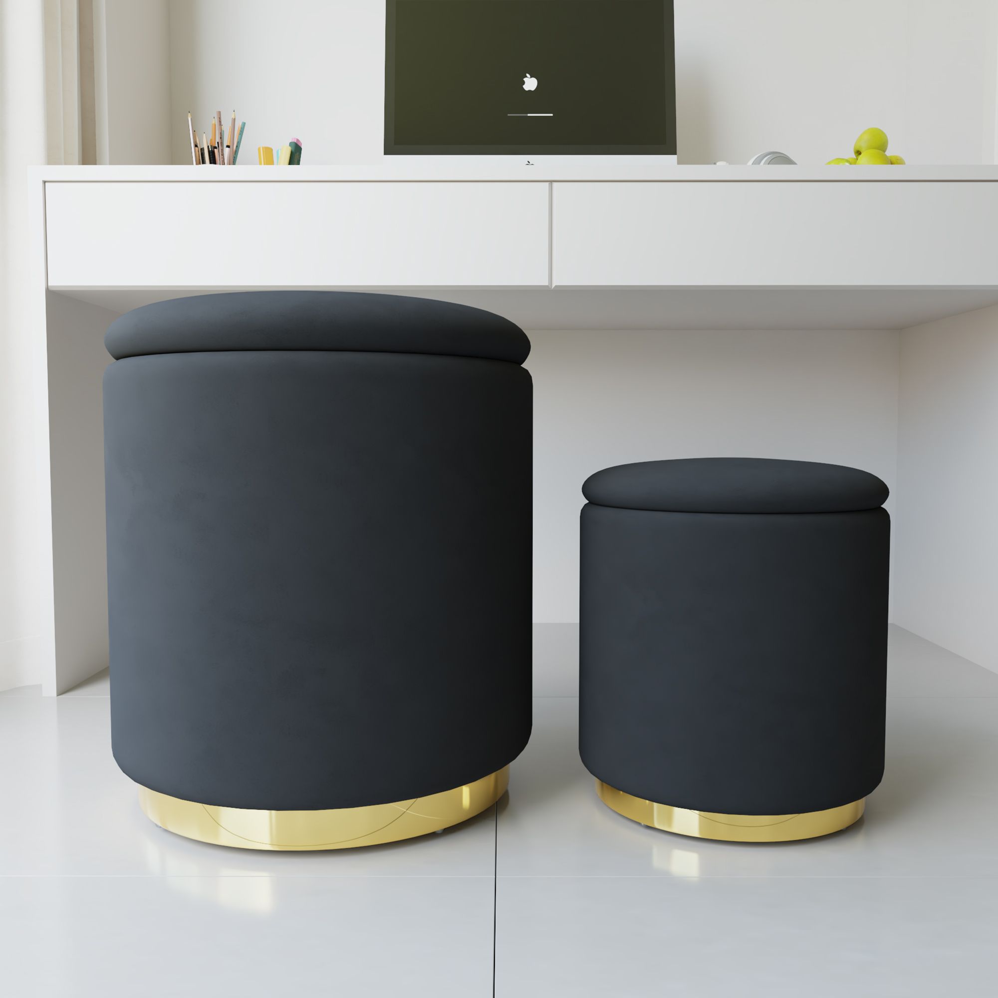 Set of 2 Modern Velvet Fabric Storage Ottomans - Round Design with Ample Storage Space for Bedroom Organization - Durable, Sturdy, and No Assemble Set of 2 Modern Velvet Fabric Storage Ottomans - Round Design with Ample Storage Space for Bedroom Organization - Durable, Sturdy, and No Assemble Set of 2 Modern Velvet Fabric Storage Ottomans - Round Design with Ample Storage Space for Bedroom Organization - Durable, Sturdy, and No Assemble