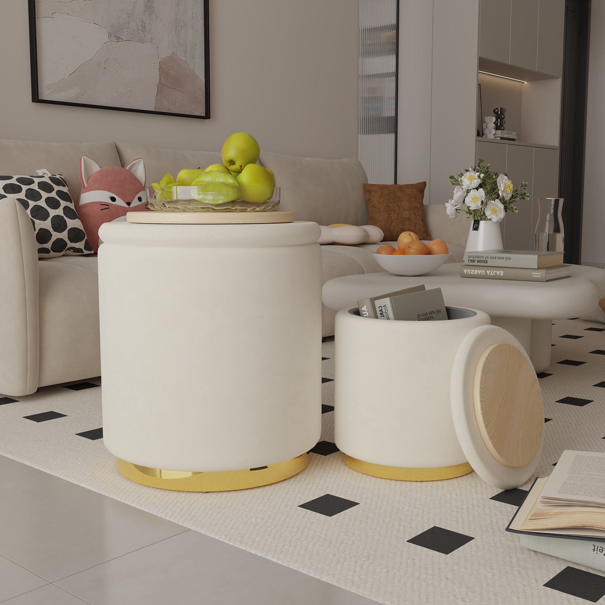 Multifunctional Use:These pouf ottomans are also prefect to be a vanity stool; it also can be a footrest stool, entryway stool, or even a piano stool. Additionally, the reversible lid can be transformed into a coffee table, with a waterproof wooden panel for easy cleaning.
