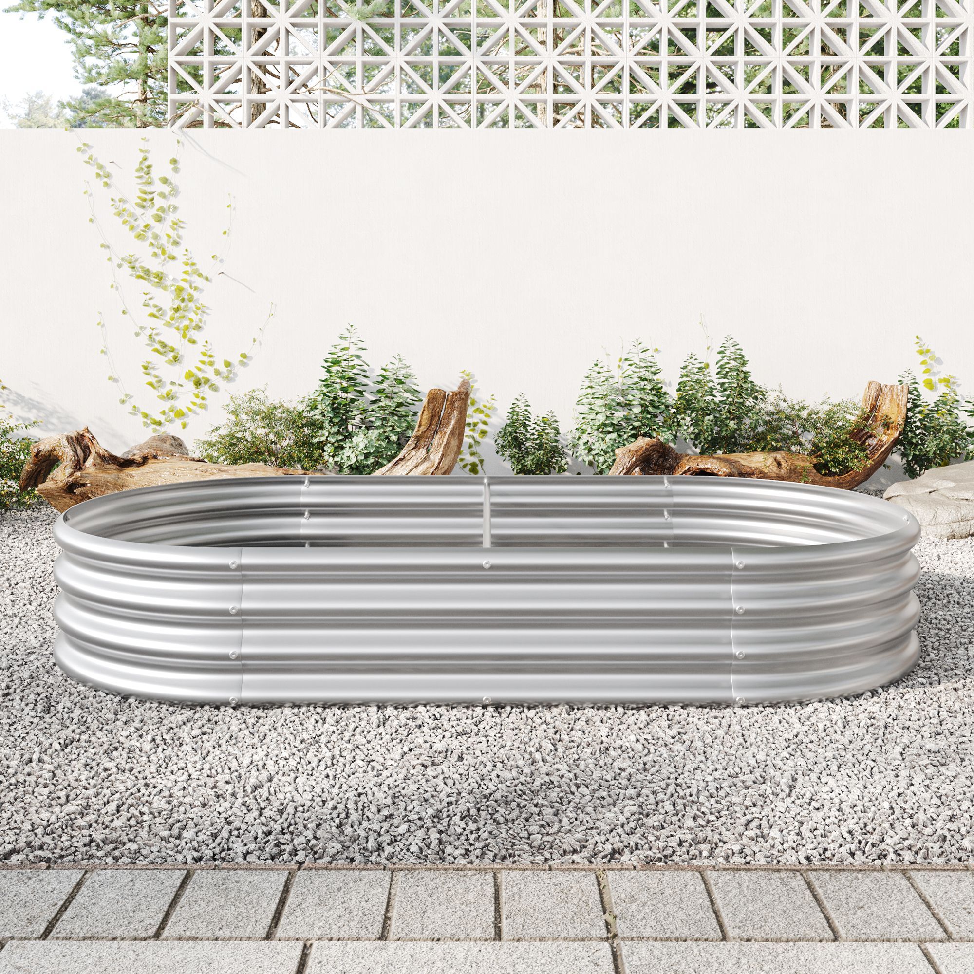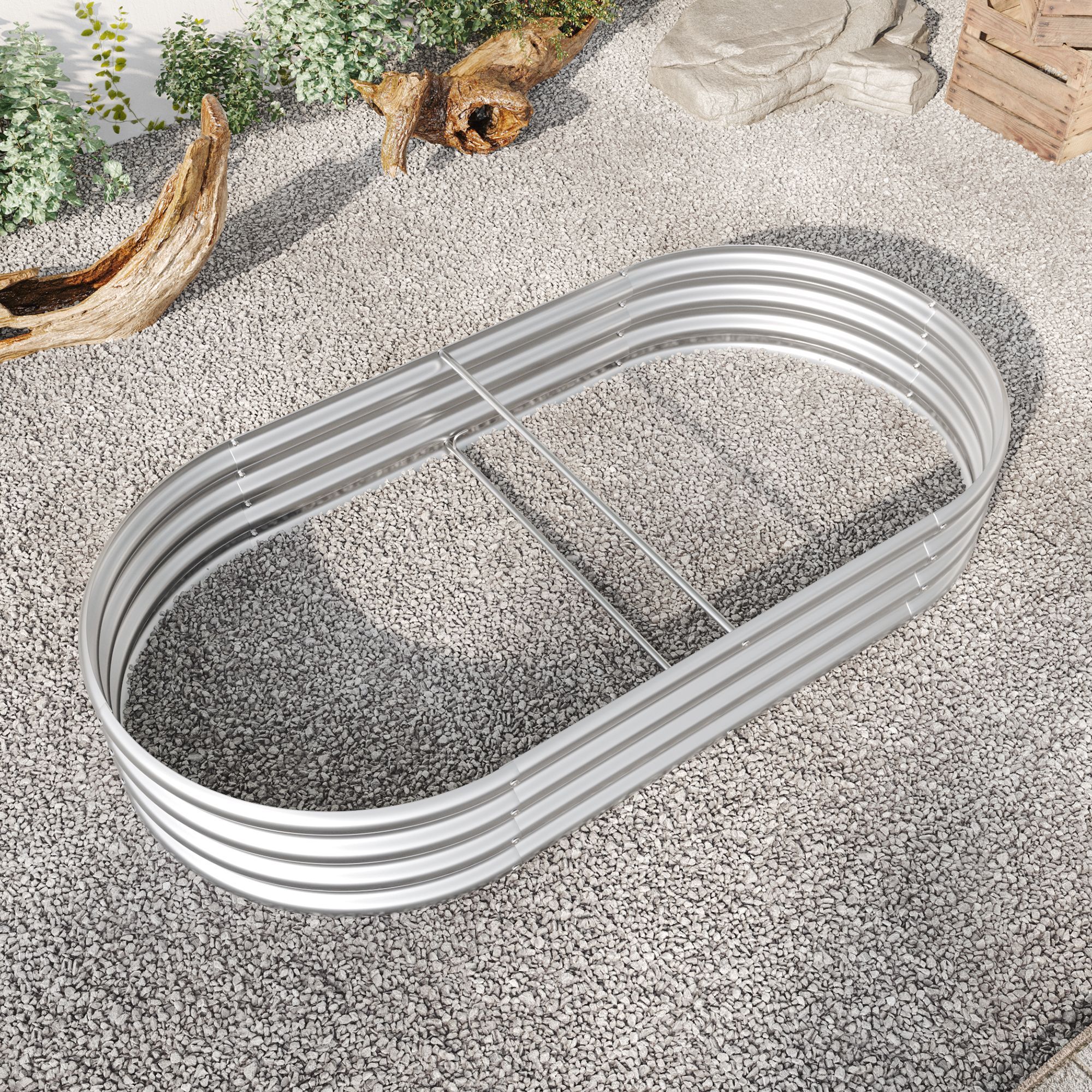 Home > Raised Garden Bed Outdoor, Oval Large Metal Raised Planter Bed for for Plants, Vegetables, and Flowers - Silver